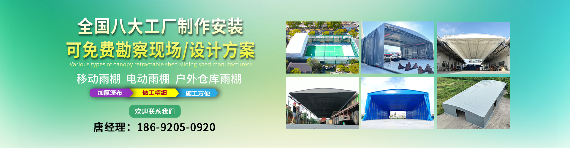 湖南鑫建華鋼結構工程有限公司是一家電動雨棚、膜結構車棚研發,生產銷售,施工安裝于一體的專業鋼結構科技公司,主要產品有伸縮雨棚,電動雨棚,膜結構車棚等。  湖南地區職員目前有200多人,自建廠房15600平方米,配備先進的生產流水線,使每件品質產品的堅實基礎。  公司在衡陽,蘇州,天津,濟南,鄭州,江門,佛山,武漢,重慶均設有服務工廠,擁有專業的技術團隊,配備先進的設備和流水線生產,產能高,貨源充足,發貨速度快,服務區域廣。  移動伸縮棚適用于通道臨時倉儲、戶外運動遮陽、污水池遮蓋、能源交通、熱力化工、礦山、船舶制造及市政建設、物流、碼頭等領域的構件制作加工,成品半成品存放、倉庫、野外儀器設備操作用房等。尤其是對工廠發貨、倉儲臨時遮雨防嗮,梅雨期較長、建設周期較短的工程施工等特別適用。還可根據用戶需求量身定制、適合企業所需不同款式的產品。  我公司堅持“誠信社會為本,客戶滿意為榮”的經營理念,做到質量把控,嚴格管理,精益求精,恪守承諾。使鑫建華逐步走向成熟,其系統化、專業化日趨完善。以專業的技術、科學的管理,更高的產品質量,優良的企業信譽,真誠的客戶服務,靈活多樣的經營方式和務實創新的企業精神愿與社會各界攜手合作,為推動智能鋼結構建筑事業的發展而不斷努力。...